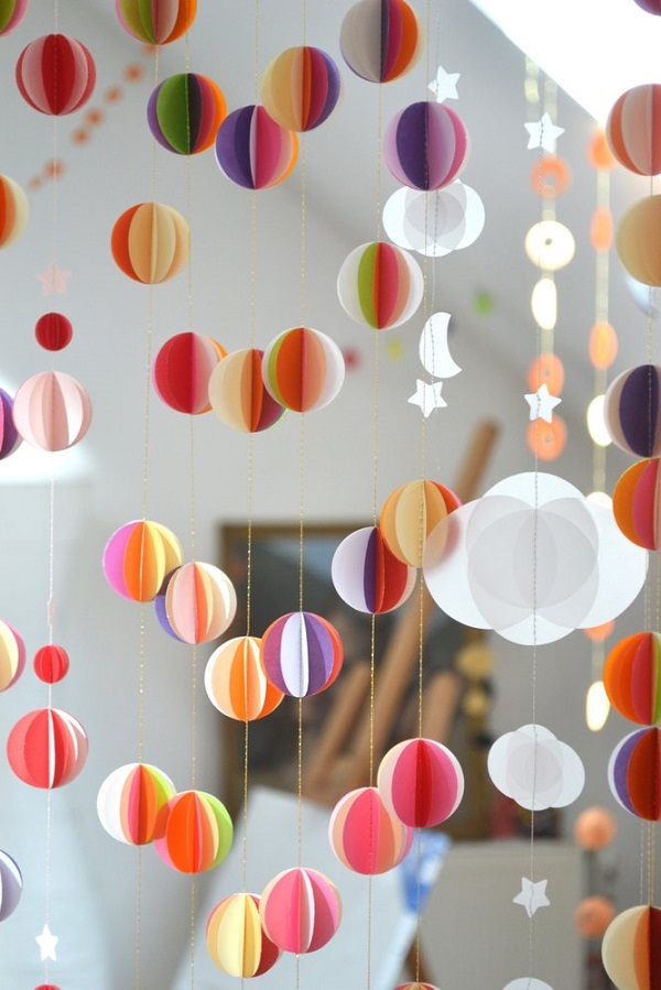 С помощью бумажных гирлянд можно не только оформить детский праздник, но и придать домашнему интерьеру яркую изюминку.