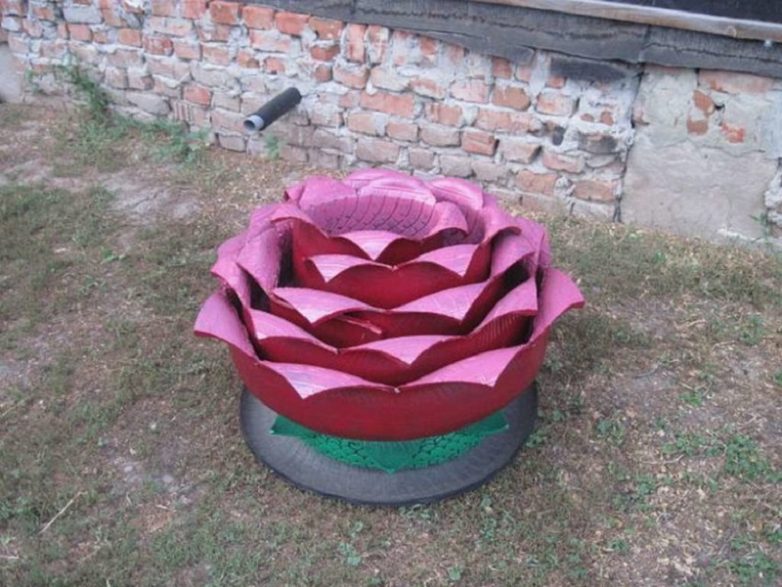 Эта роза из покрышек подойдет и для сада, и для детской площадки.