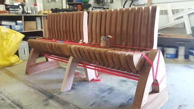 Добавим, что, по словам парня, для создания такой скамьи ему потребовалось вырезать из фанеры 72 отдельных составляющих для деталей сиденья и 11 — для крайних и средней опор.