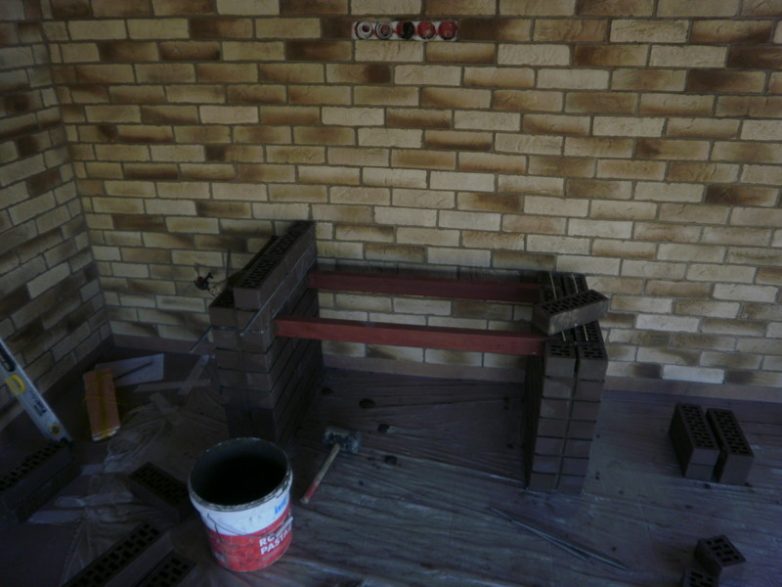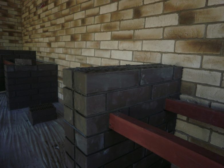 Для монтажа профиля в кирпичах просто делались пропилы. Закреплялись кладочным раствором.4. Стойки практически закончены.