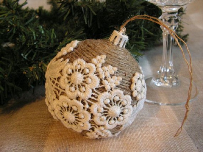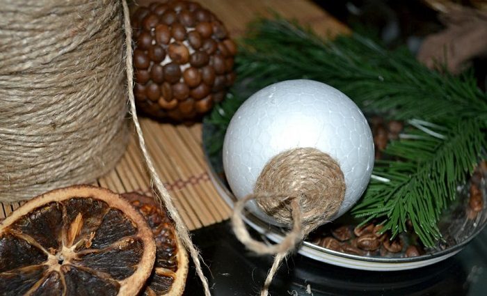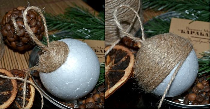 А вот и пошаговый мастер-класс, как изготовить новогодний шар с помощью джутового шпагата.