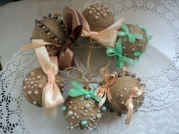 10 оригинальных идей елочных игрушек из льняной нити и жемчужных бусин, на изготовление которых у тебя уйдет не больше получаса. Просто, легко и очень красиво!