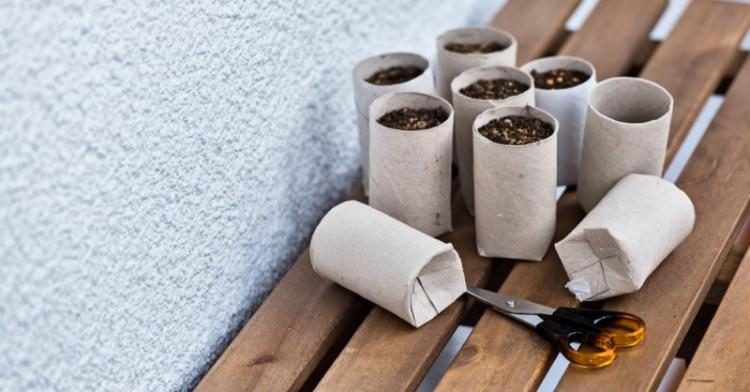 Надрезаем и складываем края так, чтобы образовалось донышко. Засыпаем землицу и высаживаем наше растение. Втулка сделана из бумаги, а это та же целлюлоза — биоразлагаемый материал, поэтому можно закопать горшочки в землю и забыть.Кормушка для птиц