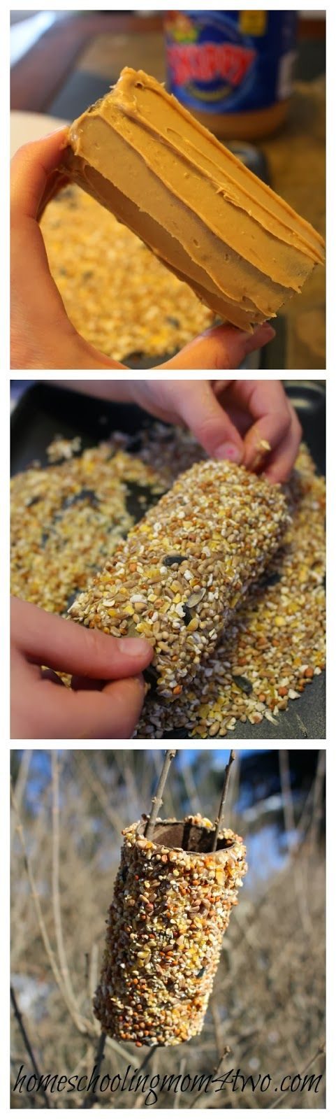 Подкормить птах зимой — святое дело. Обмазываем втулку маслом или чем-угодно липким и съедобным. Обсыпаем зернами и семечками, крупой. Вывешиваем за окно и получаем удовольствие.