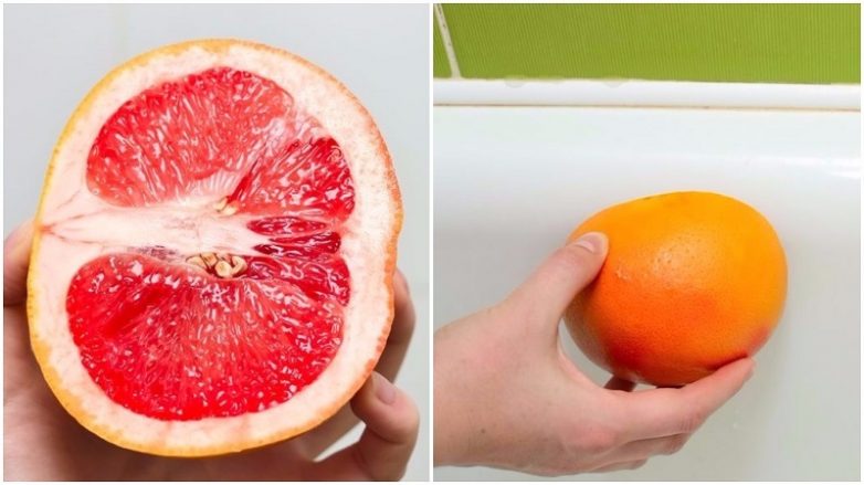 Половинка грейпфрута может стать отличным моющим средством для умывальника и ванны, если ты посыплешь фрукт солью.