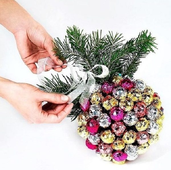 Как же мне нравится эта идея создания зимнего ананаса из конфет! В конце декабря обязательно попробую создать нечто подобное для своей сестры.