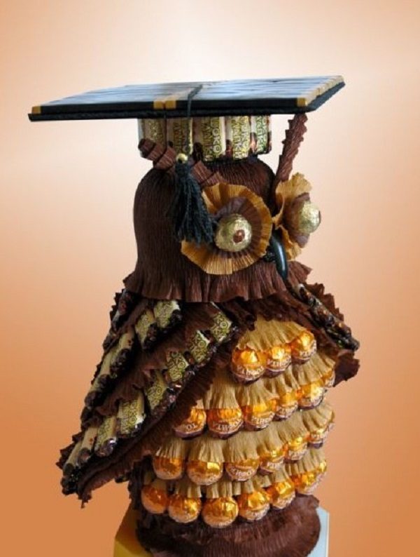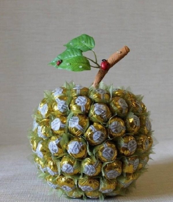 Любители рукоделия будут приятно удивлены сюрпризу в виде топиария из вкусных шоколадных конфет. Правда, есть такую красоту, на мой взгляд, даже как-то жалко…