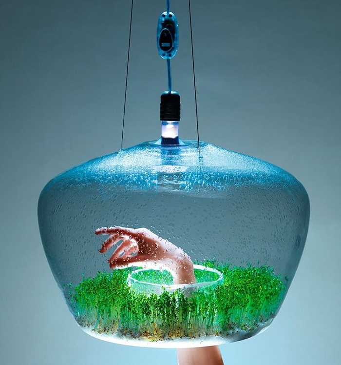 Эта изящная лампа, которая к тому же служит еще и теплицей может добавить больше сочной зелени не только в пространство, но и в диету. Светильник состоит из плафона луковичной формы и отверстием на дне, которое позволяет собирать зелень, растущую вдоль обода лампы.