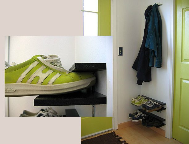 Ну а это — самый компактный вариант обувных полок. А главное — сделаны они опять же, из нескольких досок своими руками!