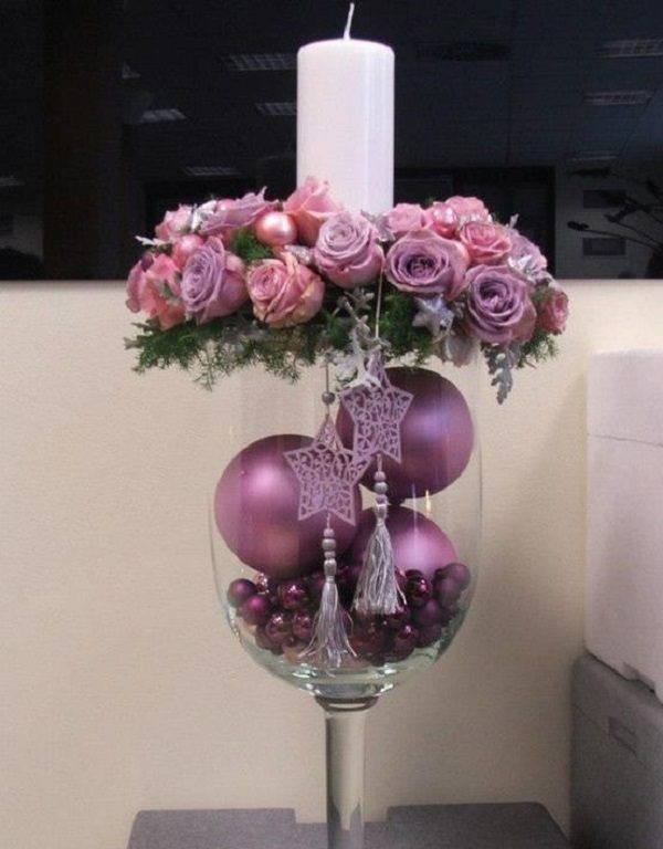 Такая композиция будет великолепно смотреться в центре стола, а с наступлением сумерек при зажженных свечах наверняка послужит главным украшением комнаты.