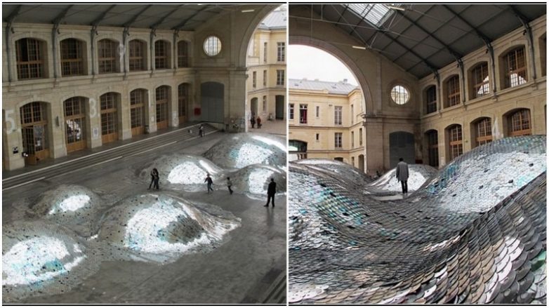 Инсталляция Wastelandscape, представленная в культурном центре Centquatre в Париже, больше всего похожа на море из компакт-дисков.