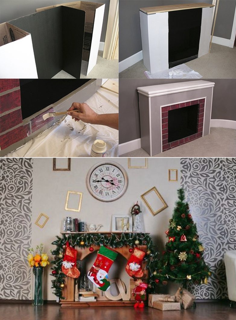 Обмануть гостей можно с помощью камина из бумаги. Он удачно впишется в новогодний интерьер. Смотри простую инструкцию, как его сделать. Укрась камин сапожками из ткани, мишурой, веточками.