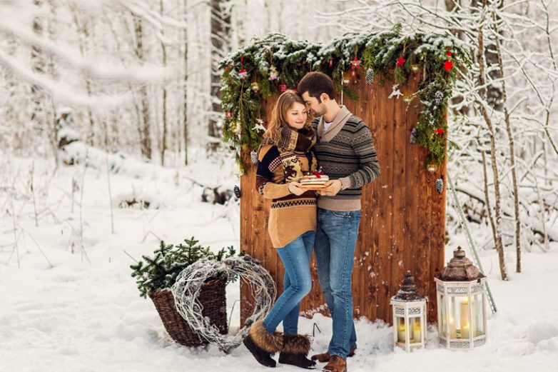Если планируешь фотозону на улице, позаботься о декоративных гирляндах, объемных конструкциях. Они хорошо смотрятся в любом исполнении. Помни, материалы должны быть устойчивыми к влаге и внешним воздействиям.Используй любой декор, который попадется под руки. Еловые ветки, шишки, бусы, статуэтки, ленты. Даже тарелки и носки пригодятся.