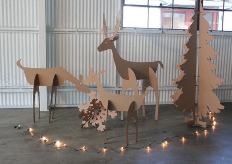 Из картонных коробок можно вырезать больших оленей или снежинки. Покрась их краской, блестками, и новогодний шедевр готов!
