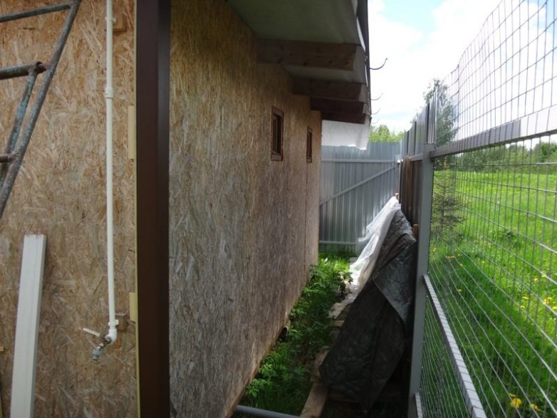 Осталось закрыть низ пластиковыми панелями под «кирпич» или «камень», поставить водостоки, приделать ступеньку и сделать электрику. Эти работы отложены на следующий год.