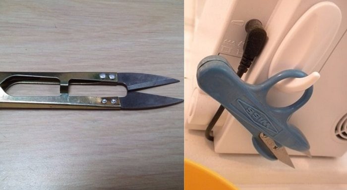 Это решение пригодится всем тем, кто в нужный момент теряет необходимые инструменты. Чтобы ножницы для ниток всегда были под рукой, наклей пластиковый крючок в удобное место на машинке (такие крючки уже продаются с липким слоем).