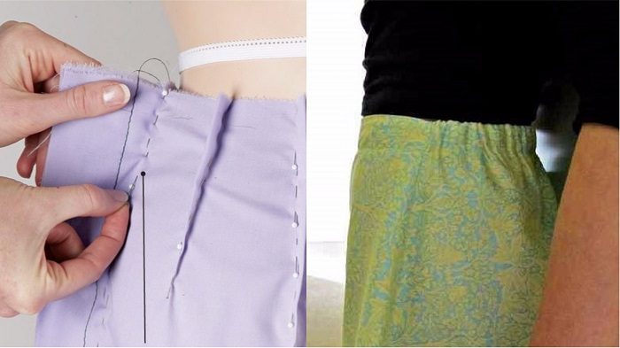 Иногда подогнать юбку по фигуре проще без вытачек. Для этого к заднему полотнищу юбки пришей пояс-кулиску и вставь широкую резинку.