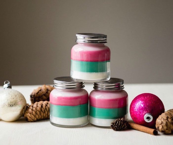 Мята ‒ главный ингредиент модных ароматизаторов в виде свечей, но вы можете добавить и свои любимые ароматические масла. Вам понадобятся: несколько маленьких стеклянных баночек из жаростойкого стекла, парафин или пчелиный воск, эфирные масла, фитили из ниток, мелки, небольшие кастрюли. Сначала растопите парафин на водяной бане, делайте все небольшими партиями, потому что каждый слой должен полностью остыть, прежде чем добавлять следующий. В растопленную порцию парафина влейте 5-10 капель нужного эфирного масла, например пихты, и вылейте парафин в баночку. Привяжите фитиль к палочке и опустите в банку с парафином. Дайте застыть. Пусть палочка с фитилем лежит на горлышке банки. Растопите следующую порцию парафина и добавьте раскрошенный розовый мелок, чтобы окрасить слой, добавьте корицу, вылейте парафин в баночку, дайте застыть. Растопите третью порцию парафина, добавьте зеленый мелок и ванильное масло, вылейте в баночку. Когда все слои застынут, срежьте фитиль с палочки. Закройте баночки крышками и храните до использования. Такие свечи ‒ отличный подарок!