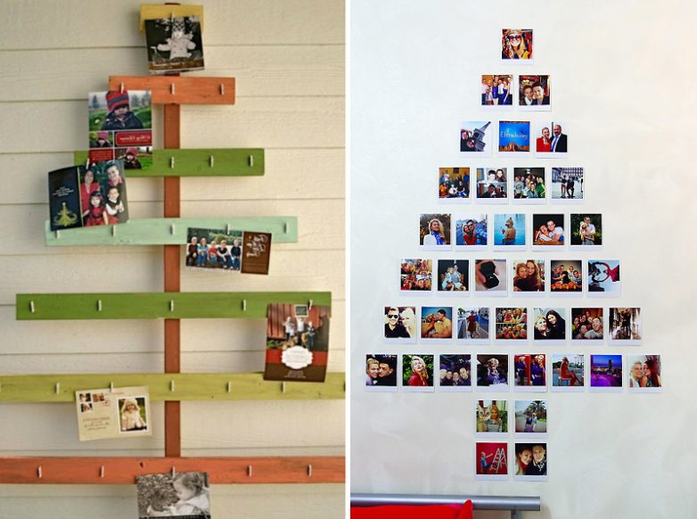 Выбери самые ценные домашние снимки и закрепи их в виде елки. Вот и всё, шедевр готов!