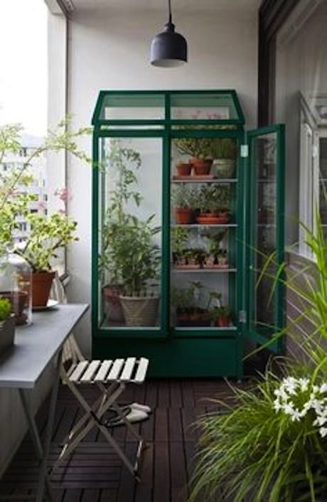 Еще один удачный вариант для балкона — шкаф- теплица. Ножки теплиц регулируются, так что стоять такой шкаф может даже на неровном полу, а теплолюбивым растениям будет не холодно.