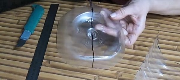 Дно бутылки выбрасывать не нужно — разрежь его пополам.