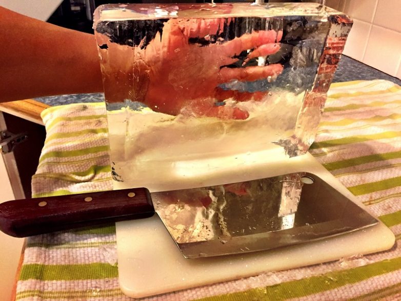 Помести кристально чистую часть на разделочную доску и разрежь ее на кубики желаемого размера.Остается насыпать полученные куски льда в бокал для коктейля и наслаждаться полученным результатом.