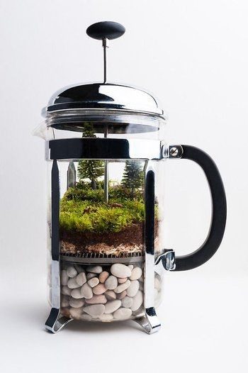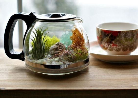 Старые чайники или кофе-прессы прекрасно подойдут для создания модных сейчас флорариумов.