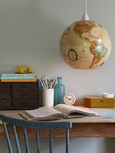 Из старого глобуса может получиться отличный абажур для кабинета или комнаты подростка. Для того, чтобы светильник давал больше света, необходимо проделать несколько отверстий в глобусе.