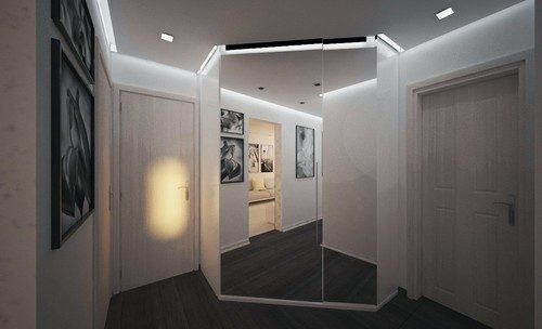 Помните, что проклятие санузлов со скошенным углом и встроенных в угол шкафов снимается при помощи сплошного зеркального остекления со стороны прихожей. Главное — предупреждать об этом гостей еще до того, как они ударятся лбом о зеркало.