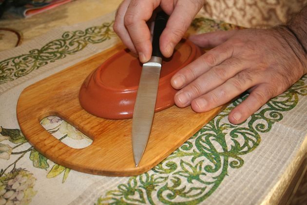 Подойдет любая твердая негладкая поверхность, к примеру бортик дна керамической или фарфоровой кружки, тарелки, вазы, горшка. Один из этих предметов посуды поставьте на ровную поверхность, подложив под нее вафельное полотенце, сложенное вчетверо. Далее о шершавый бортик заточите нож. Времени на эту процедуру уйдет, конечно, больше, чем при использовании точильного камня, но результат порадует.