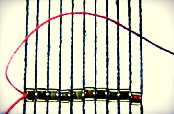 - все нити должны иметь одинаковое натяжение; — количество нитей должно быть на одну больше чем наибольшее количество бисерин в одном ряду (наибольшем ряду изделия);