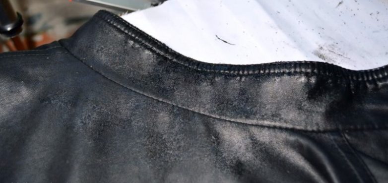 Сразу нужно сказать, что этот способ подойдет только для небольших царапин. Если повреждения имеют значительную площадь, как на этом воротнике, придется воспользоваться покупной «жидкой кожей».