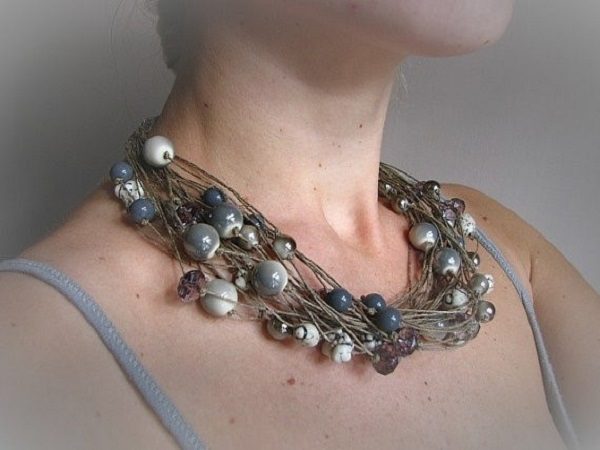 Нити льна не вызывают аллергии, а сам лен задерживает развитие бактерий и хорошо защищает человеческий организм от солнечной радиации. Также лен — отличный антисептик. Он подавляет вредную микрофлору, снимает зуд, жжение и другие воспалительные явления.Ну а если использовать в качестве дополнения бусины из натуральных камней, например таких, как янтарь, то украшение может принести удачу и счастье.