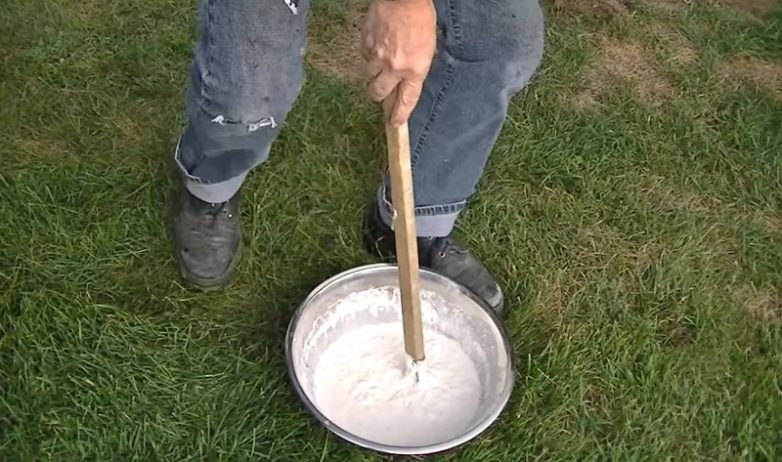 Затем всыпь железный сурик и замеси раствор до полной однородности.