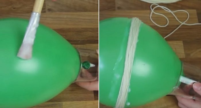 Хорошо промазывая клеем ПВА воздушный шарик, обмотай его нитками наполовину.
