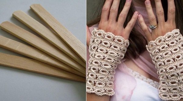 Самое интересное, что для вязания в этой необычной технике вам потребуется палочка от мороженого или обычная линейка, а также нити и крючок.