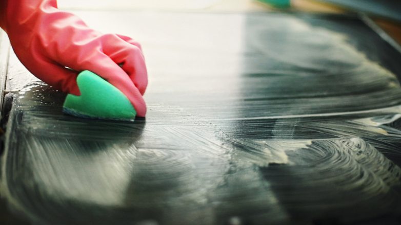 Лужицы от воды нужно также протирать незамедлительно, не оставляя их на ночь или на целый день. Промокните их хотя бы бумажной салфеткой или сухой тряпкой. От воды, особенно жесткой водопроводной, на столешнице остаются разводы в виде тонкого белого ободка.