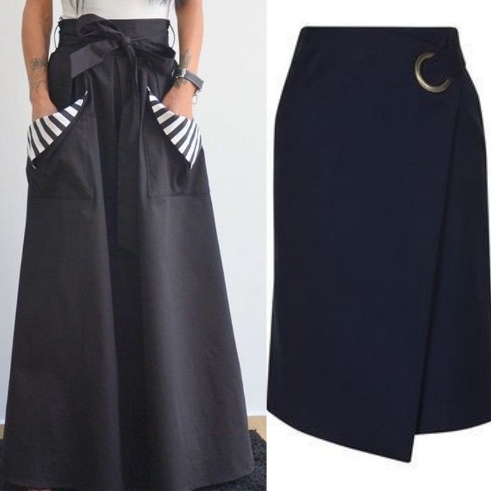 Главной деталью юбки такого типа, придающей модели оригинальный, индивидуальный и сексуальный вид, является запах.Фасон и длина юбок с запахом бывает разным, это могут быть как широкие модели, так и узкие изделия, как длинные юбки, так и короткие модели. Отделка юбок с запахом выполняется с применением вытачек, складок, карманов и других элементов.