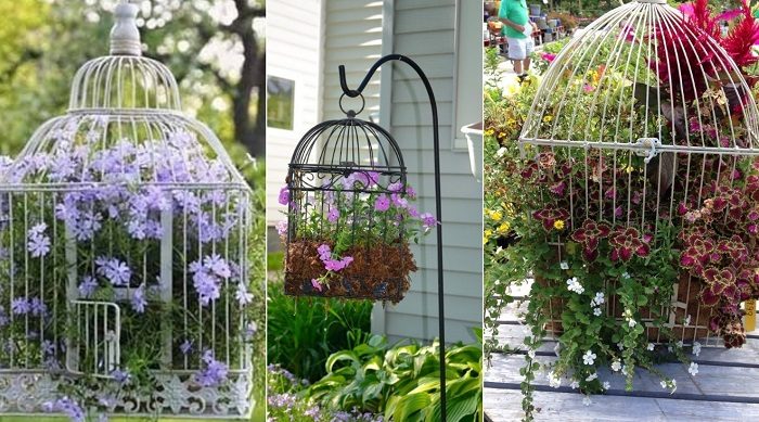 В такой вазон можно превратить старую клетку. Для этого просто наполни ее землей, высади ампельные цветы — их побеги будут красиво смотреться, обвивая тонкие металлические прутья клетки.