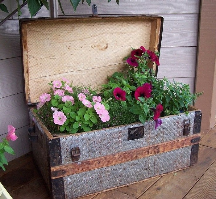 И еще одна идея, которую я обязательно воплощу на своем дачном участке, — сундук с цветочными сокровищами. Удивительное великолепие!