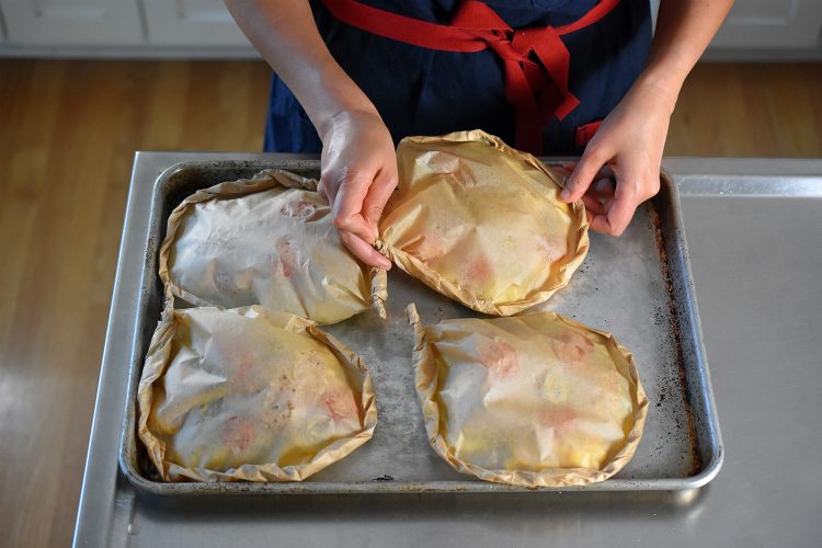 Если хотите приготовить паровую рыбу, семгу или лосось, ее рекомендуют поместить в специальный бумажный карман из пергамента, добавив овощи, приправы и немного лимонного сока. Пергамент сохранит влагу и ароматы, так что рыба будет нежной и сочной.