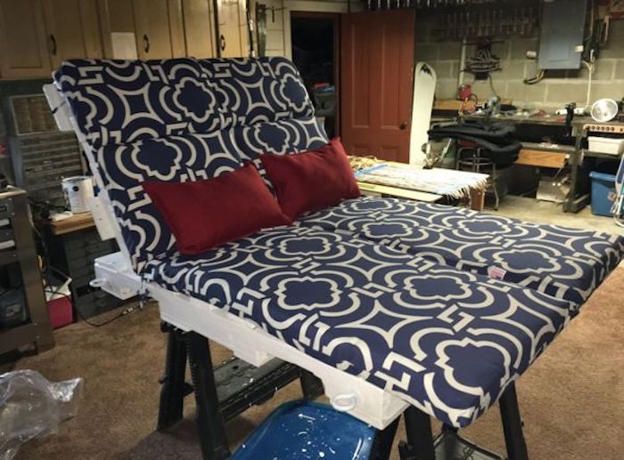 Обычные поддоны могут послужить строительным материалом для реализации различных идей. Вот например, в данном случае из них изготовили прекрасное дачное ложе для отдыха.