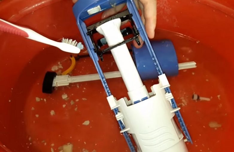 Для начала попробуй очистить сливной бачок унитаза, не извлекая из него механизм. Если загрязнения не очень велики, этот способ может сработать.