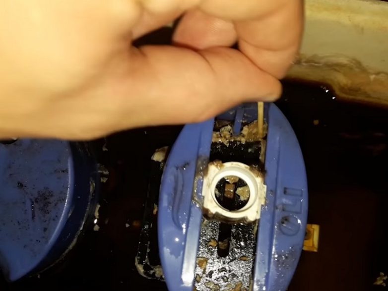 Поэтому продолжай чистку. На этот раз вместо лимонной кислоты используй уксус.Подогрей его до 40–50 градусов.Спусти воду и в процессе наполнения бачка добавь подогретый уксус.Оставь раствор в бачке на 2–3 часа. Уксус разъест налет и ржавчину. После этого повтори процесс очистки.Если полной очистки и на этот раз добиться не получилось, придется извлечь из бачка механизм. Сделать это несложно.Для начала сними механизм слива воды. Для этого его нужно взять за корпус и повернуть против часовой стрелки (влево).