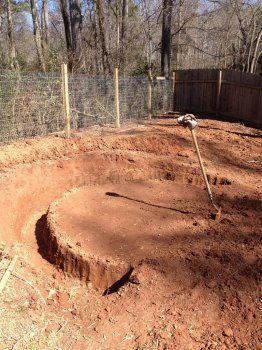 Вокруг площадки необходимо вырыть яму под фундамент стенки кострища.