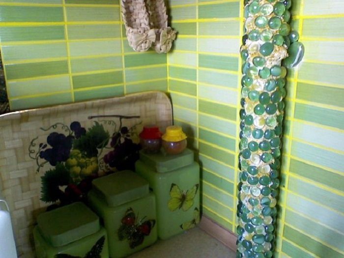 Не всегда удобно закрывать трубы вспомогательными материалами. В некоторых случаях нет места для сложных конструкций, или время на ремонт в туалете может быть ограничено. Иногда трубы достаточно просто задекорировать.