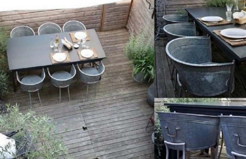 Несколько вариантов простых поделок из старых оцинкованных ведер и тазиков!