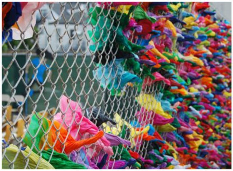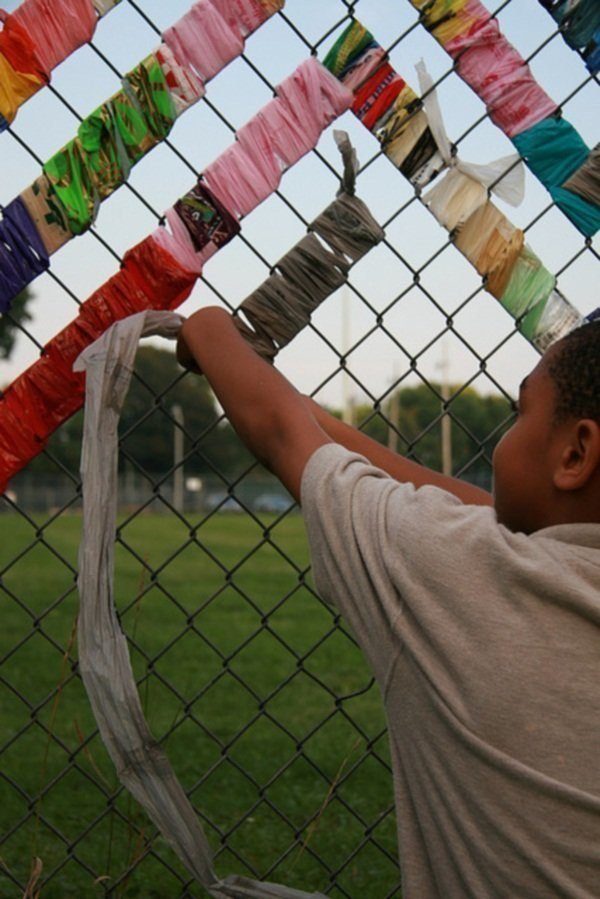 Яркие пластиковые ленты, цветной скотч, нитки и т.п. — и у вас невероятная красота