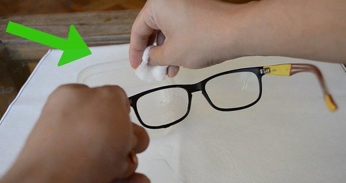 После этого смочите жидкостью для снятия лака вату или тампон и протрите им гаджет или очки.
