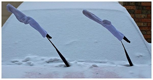 Для защиты щеток стеклоочистителя от наледи наденьте на них носки и оставьте в таком виде на ночь. Только не прижимайте «дворники» к стеклу! Отодрать заледеневшую ткань от стекла – задача не из простых.